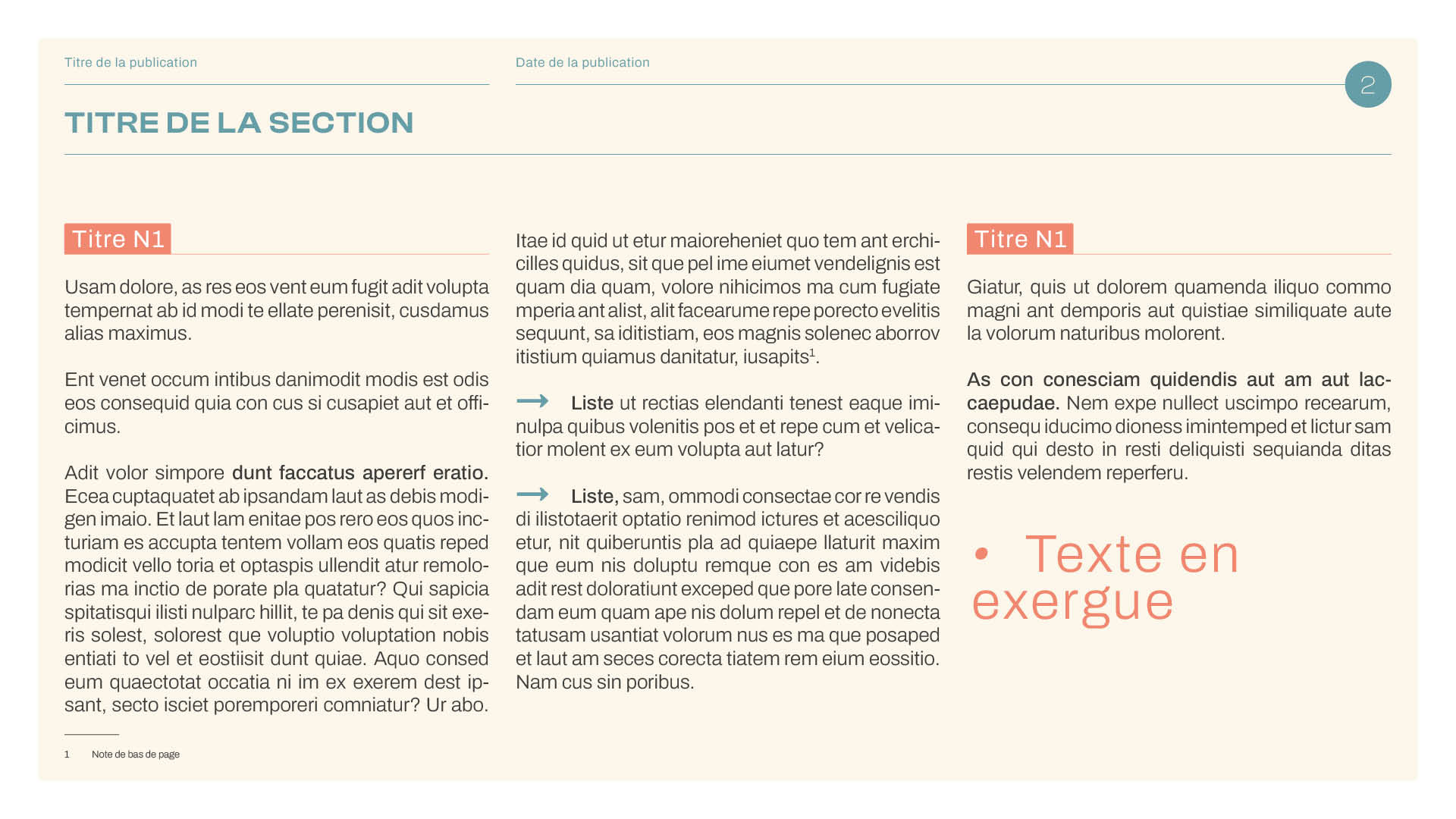 – un gabarit de publication A4 au format InDesign, intégrant les styles, le principe de mise en page et le concept graphique ;