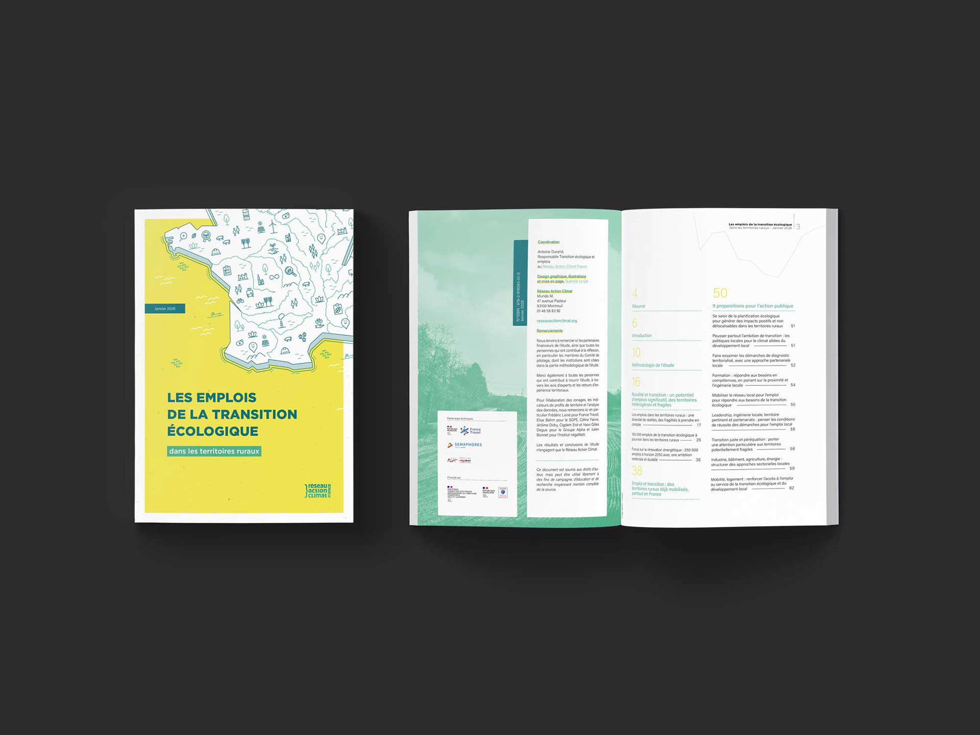 Concevoir la direction graphique et structurer la mise en page d'un rapport de 64 pages destiné à nourrir le débat public et à soutenir les acteurs locaux (collectivités, structures d'insertion, parcs naturels régionaux, entreprises).